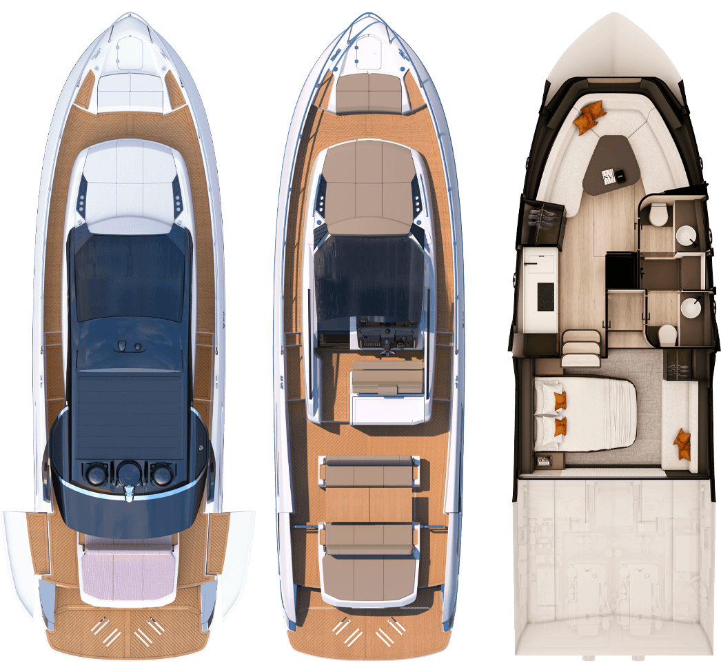 Style, iconicity, elegance, and recognizability characterize the timeless lines of 440 Regina. A great challenge, aimed at combining the features of a dynamic open boat and the comforts of a yacht. The modern and sophisticated design harmoniously blends with a wide range of comforts, offering an oasis of relaxation and entertainment.