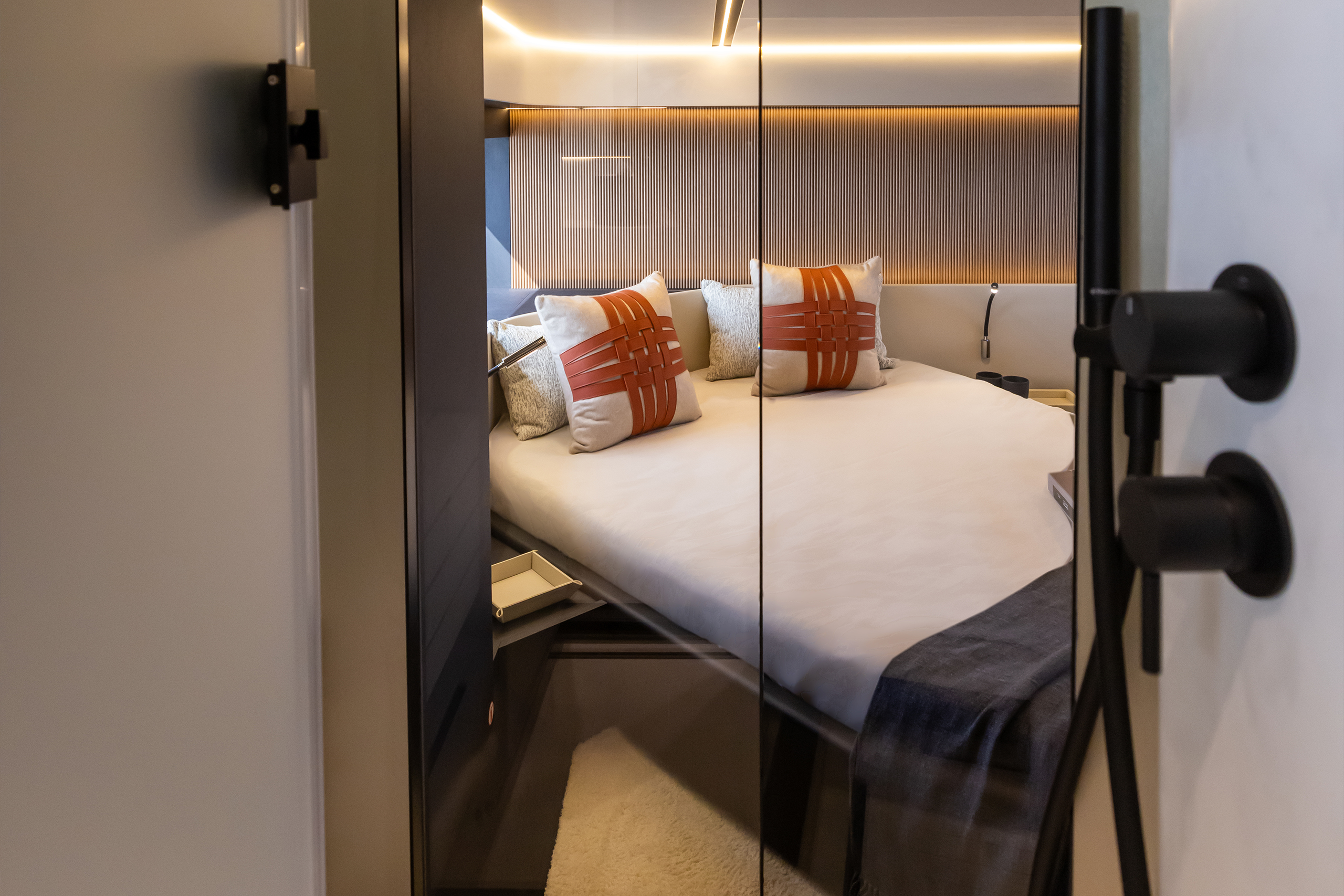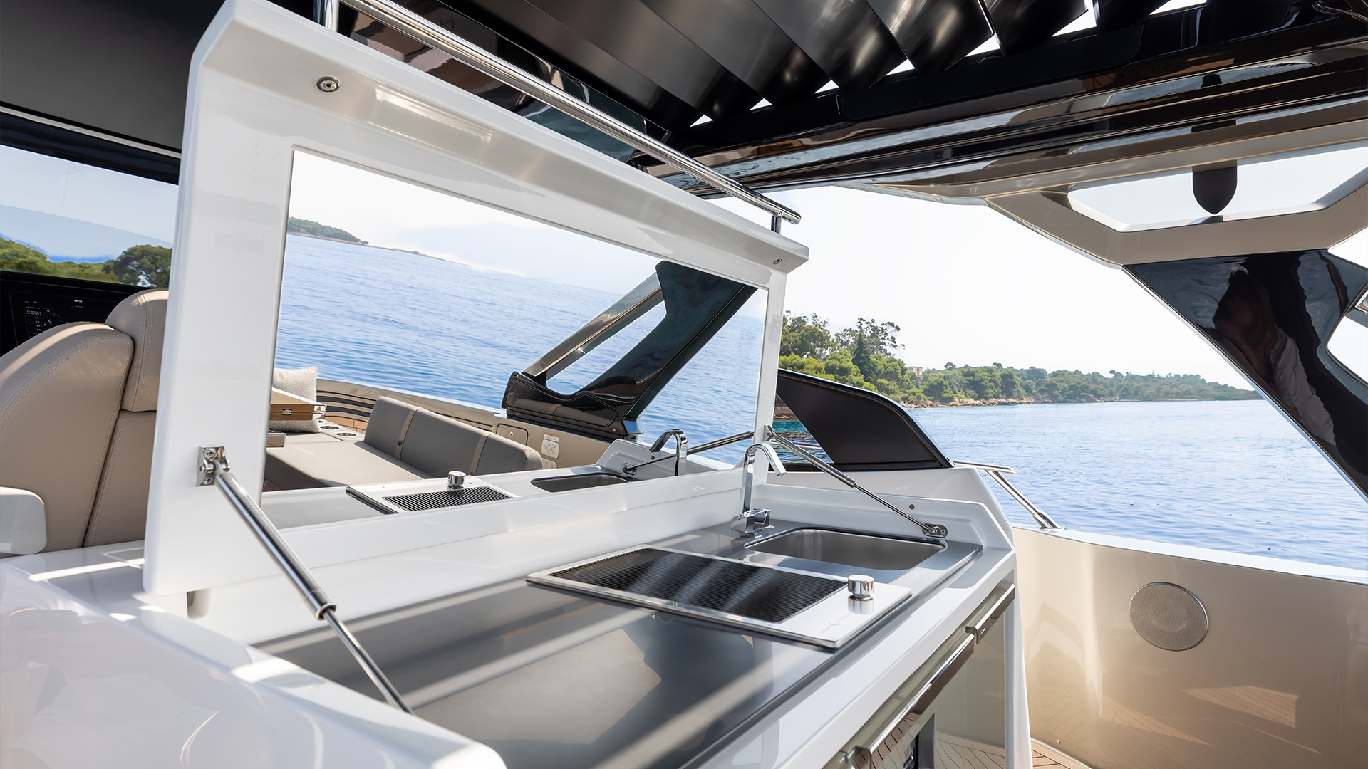 Una presenza decisa, ideale per chi desidera uno yacht in grado di esprimere stile autentico e carattere, dove design e performance convivono in perfetto equilibrio.