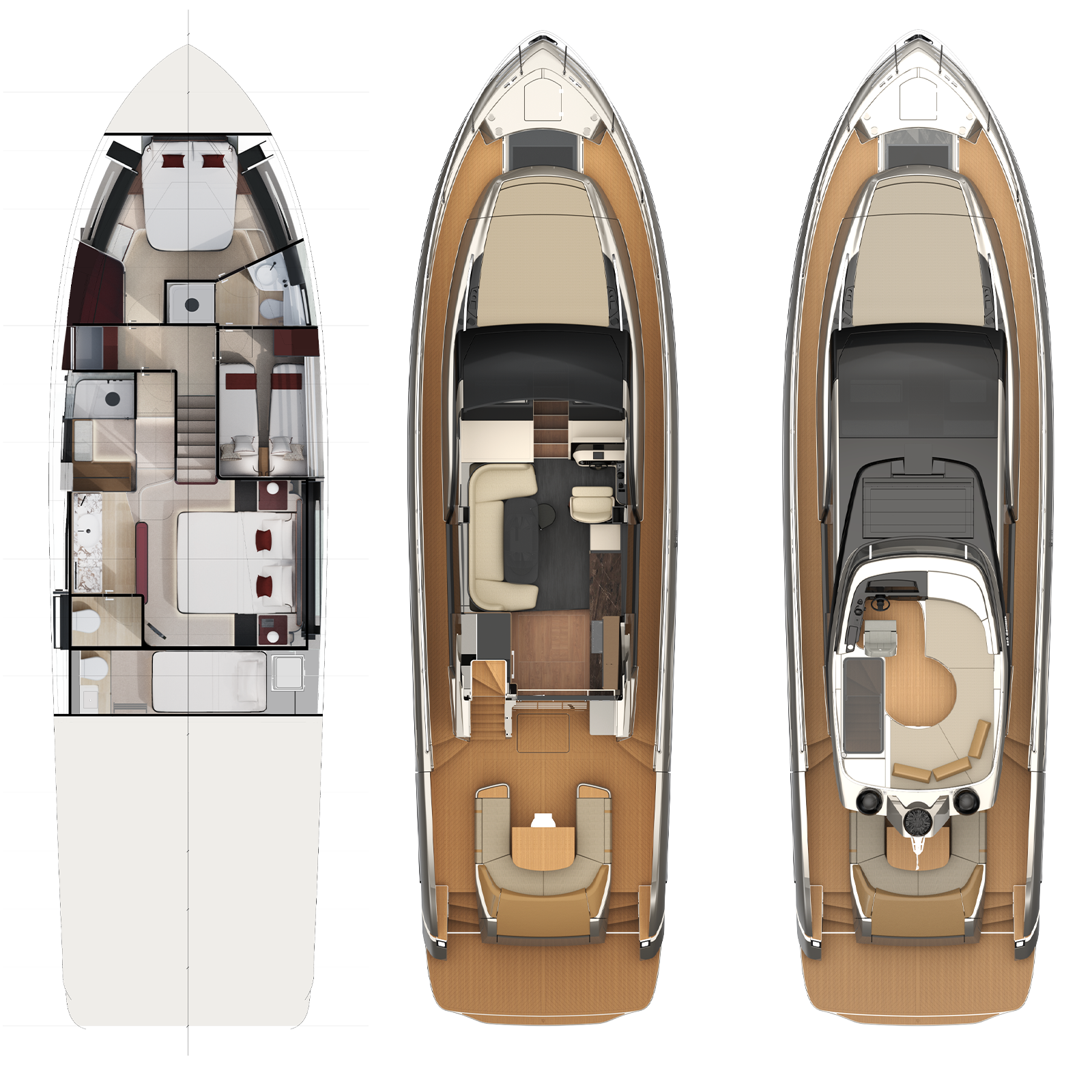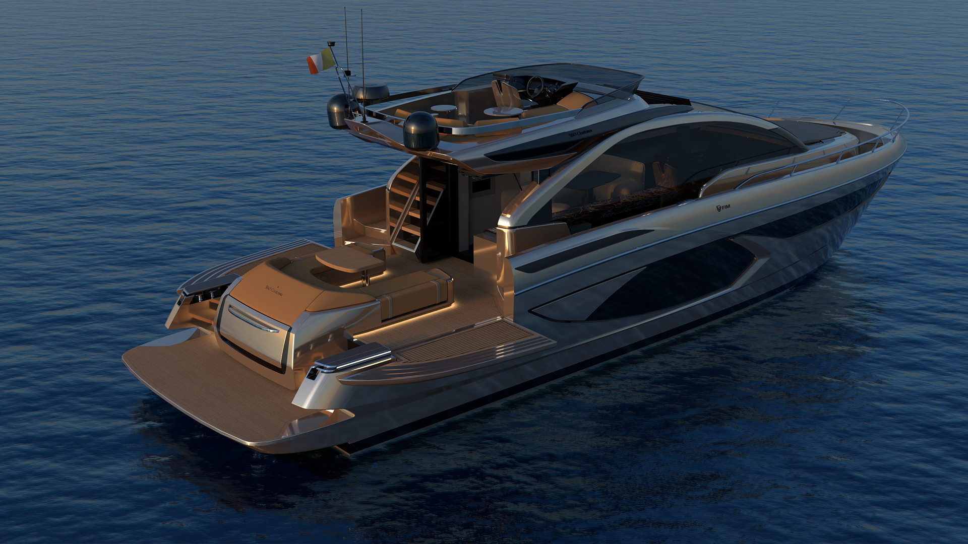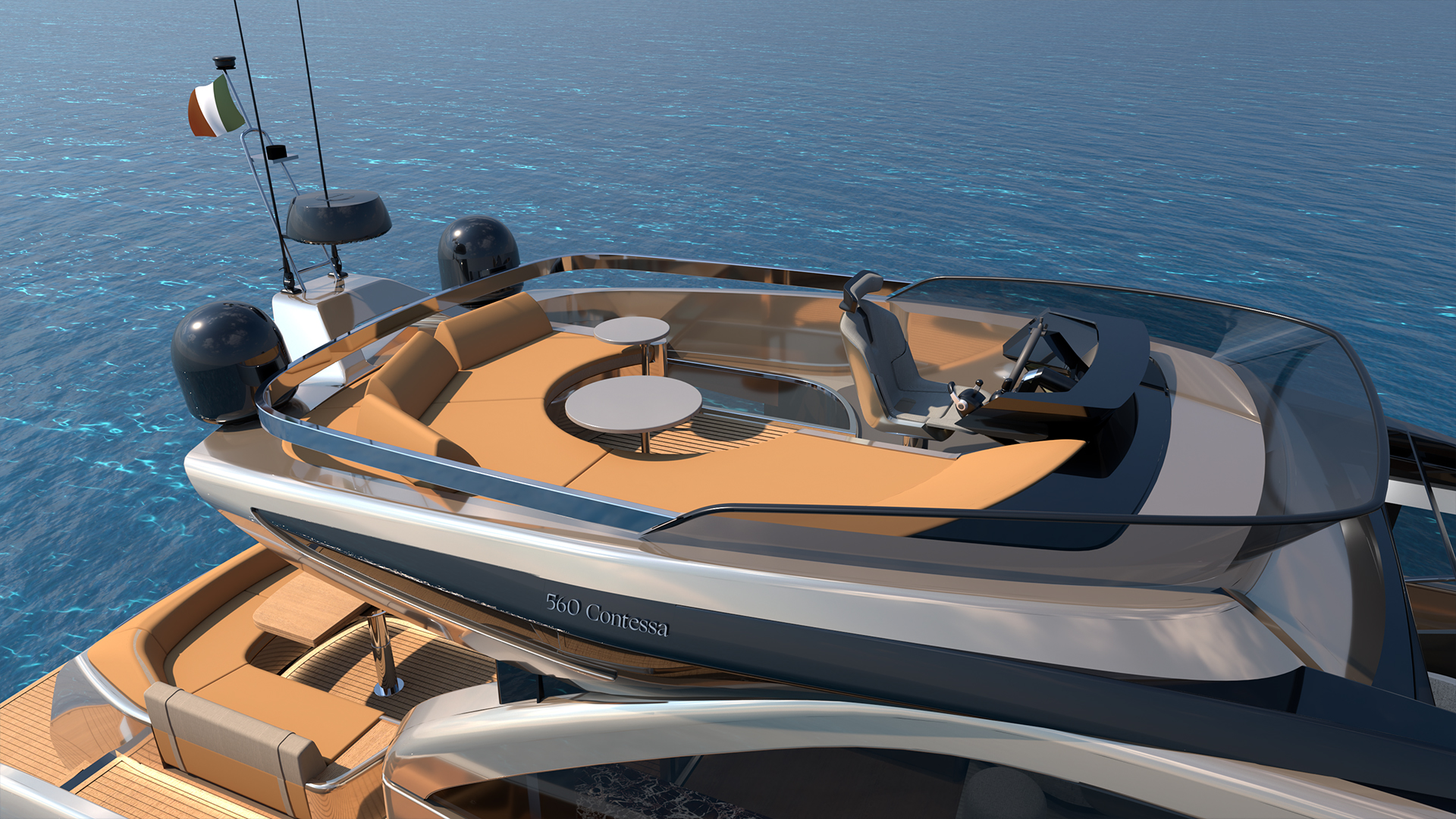580 Contessa inaugura la gamma sport fly. Il progetto definisce una nuova direzione stilistica, in cui la dimensione fly entra nel linguaggio FIM come evoluzione del suo modo di vivere il mare.